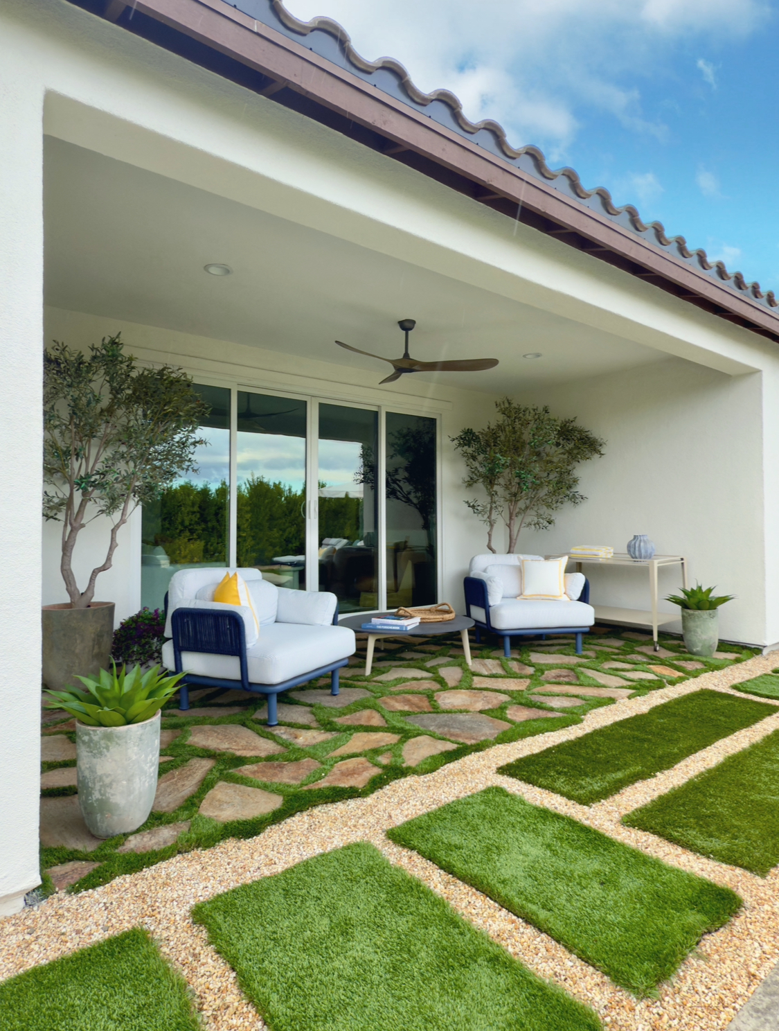 The outdoor living spaces are furnished with custom Brown Jordan pieces, perfectly complementing the home’s Spanish aesthetic and ensuring every corner is both elegant and comfortable.